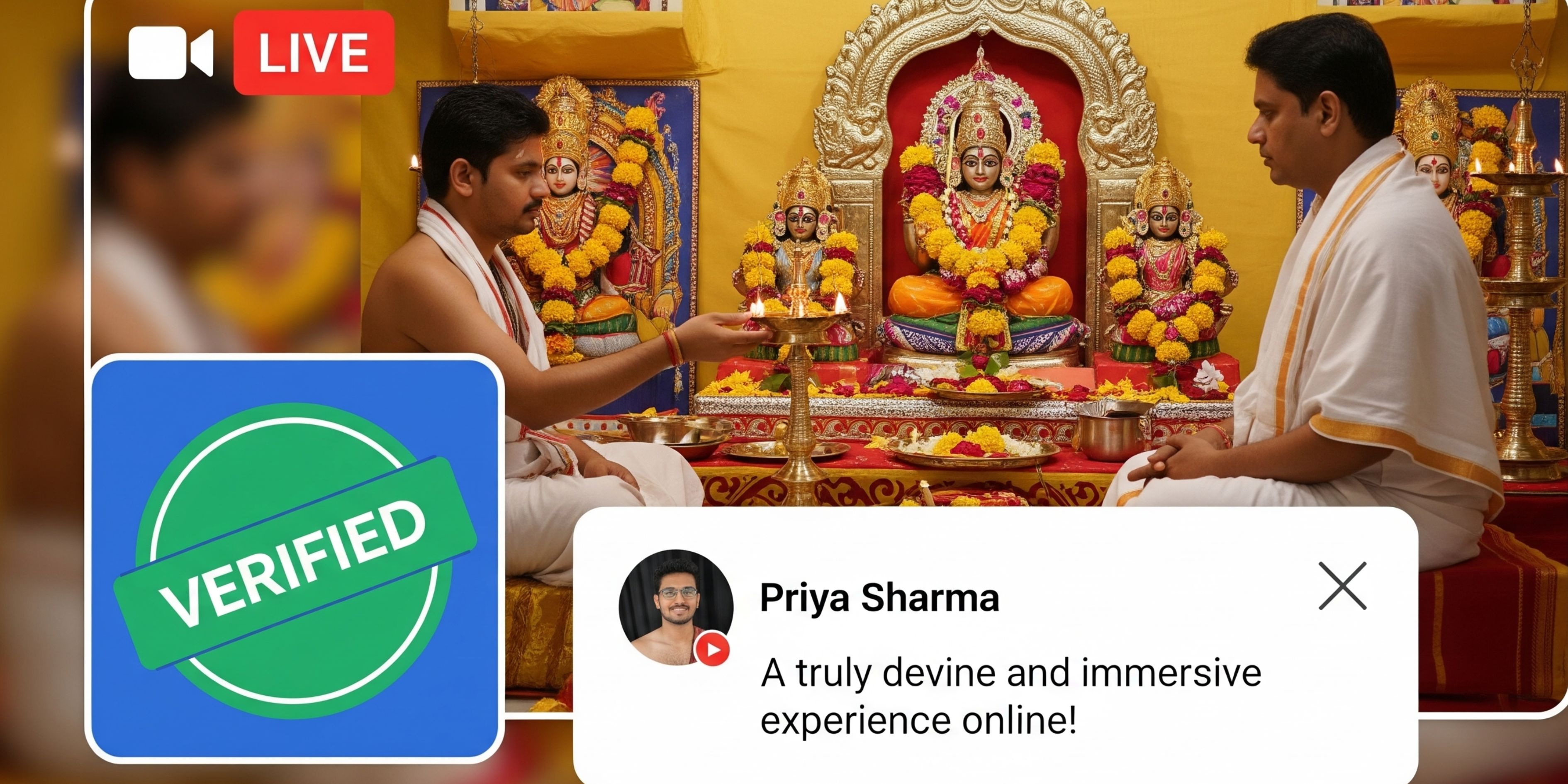 In reality, this is among the most widespread misconceptions. Many people believe that a puja must not be authentic just because it is not taking place in front of them. But let's take a moment to think. Are you constantly there for the whole time, even at offline temples or pandals? Are you certain that all of the rituals are being performed as promised?